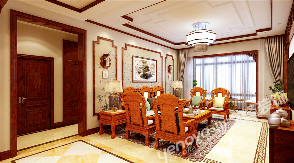 小区:檀府 面积:140㎡ 户型:三居 风格:新中式风格