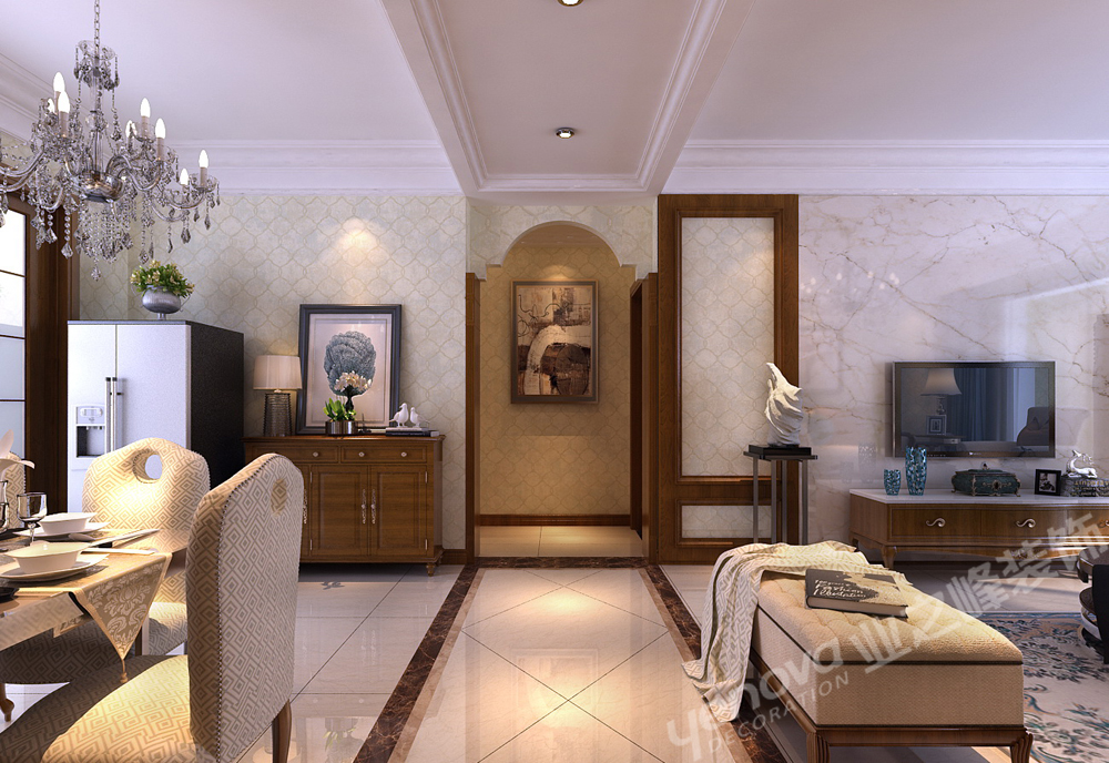 本案户主要求简约,雅致,色调温馨,音乐老师,整体风格要求雅致,眼前不想有太繁复事物和纷扰。整体的色调要温馨。后来风格定位现代简约,客厅地砖简洁的拨打线条和整个简约吊顶的线条流畅的遥相呼应,使得整个地面与吊顶的呼应如同湖面倒影一般,餐厅卡座的设计,既符合客户自身的需求,也使得整个餐厅的空间扩大相当大的一块区域。