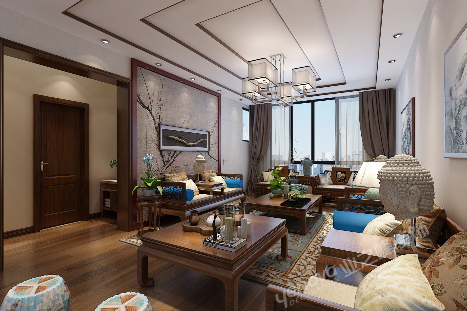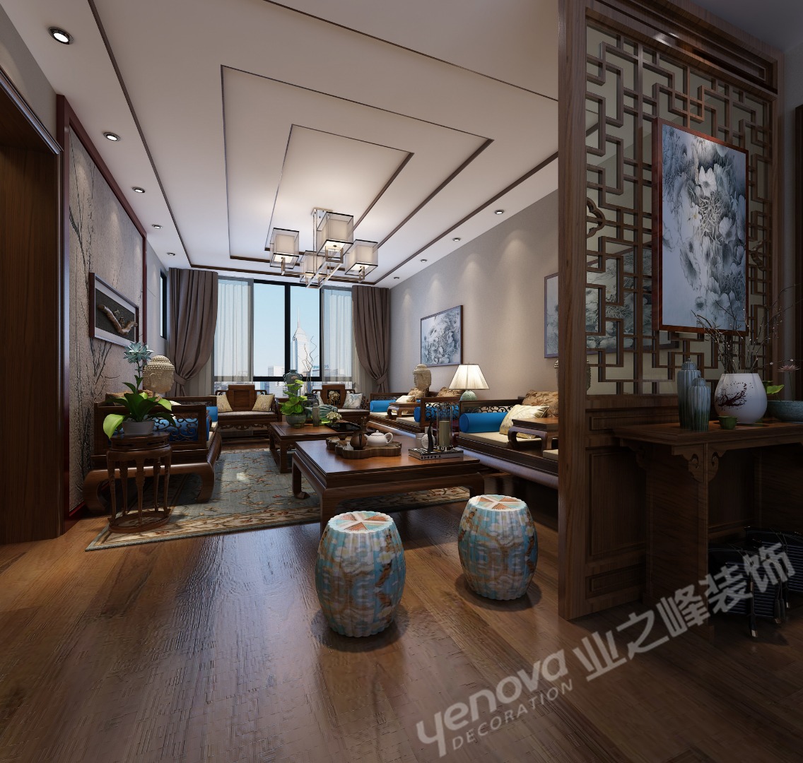 本案业主做艺术收藏行业多年,对中式风格情有独钟,但却不古板,希望将中式风格与现代居所相结合,打造适合现代居住要求的别样住宅.新中式风并非完全意义上的复古明清,而是通过中式风格的特征,表达对清雅含蓄、端庄丰华的东方式精神境界的追求。中国风的构成主要体现在传统家具(多为明清家具为主)、装饰品及黑、红为主的装饰色彩上。室内多采用对称式的布局方式,格调高雅,造型简朴优美,色彩浓重而成熟。中国传统室内陈设包括字画、匾幅、挂屏、盆景、瓷器、古玩、屏风、博古架等,追求一种修身养性的生活境界。中国传统室内装饰艺术的特点是总体布局对称均衡,端正稳健,而在装饰细节上崇尚自然情趣,花鸟、鱼虫等精雕细琢,富于变化,充分体现出中国传统美学精神。