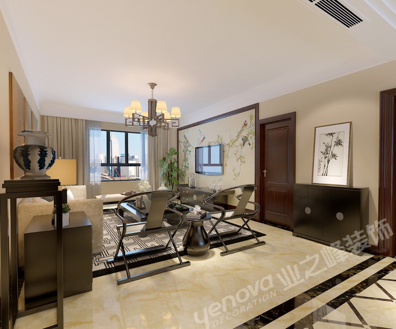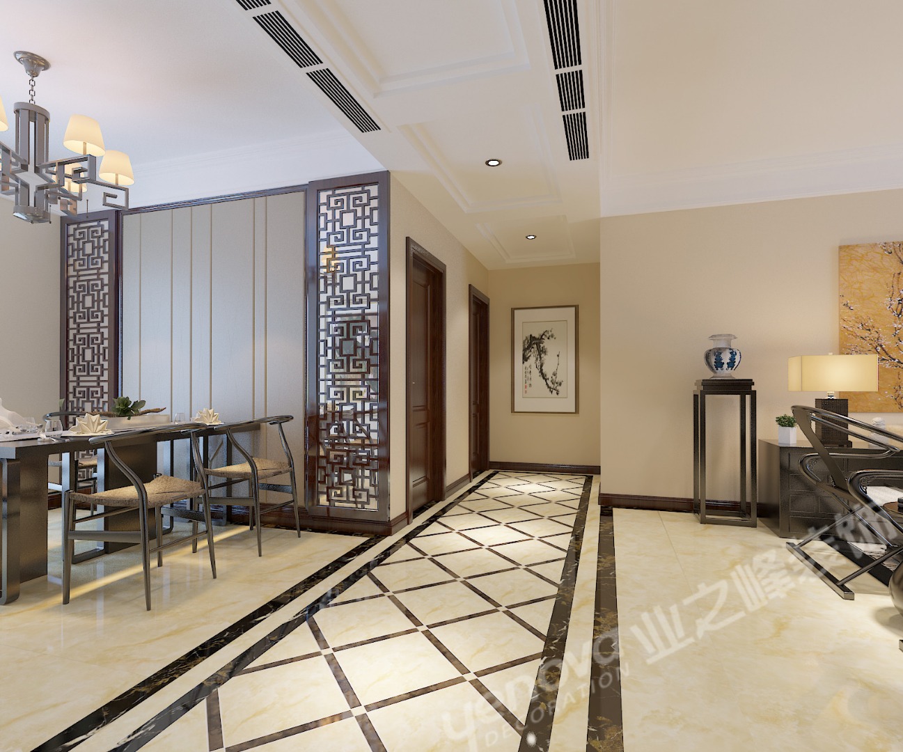 本案业主做艺术收藏行业多年,对中式风格情有独钟,但却不古板,希望将中式风格与现代居所相结合,打造适合现代居住要求的别样住宅.新中式风并非完全意义上的复古明清,而是通过中式风格的特征,表达对清雅含蓄、端庄丰华的东方式精神境界的追求。中国风的构成主要体现在传统家具(多为明清家具为主)、装饰品及黑、红为主的装饰色彩上。室内多采用对称式的布局方式,格调高雅,造型简朴优美,色彩浓重而成熟。中国传统室内陈设包括字画、匾幅、挂屏、盆景、瓷器、古玩、屏风、博古架等,追求一种修身养性的生活境界。中国传统室内装饰艺术的特点是总体布局对称均衡,端正稳健,而在装饰细节上崇尚自然情趣,花鸟、鱼虫等精雕细琢,富于变化,充分体现出中国传统美学精神。