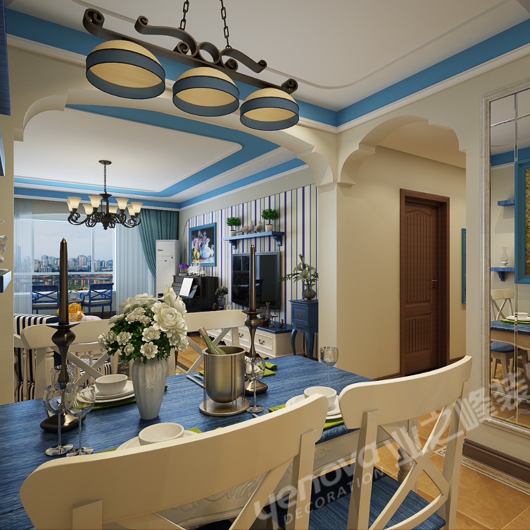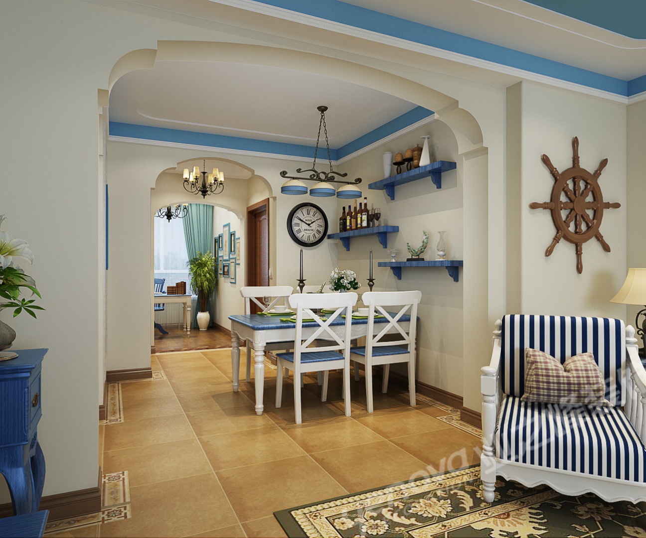 小区:玫瑰庭院 面积:150㎡ 户型:三居 风格:地中海风格