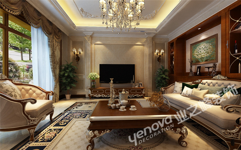 主体风格以新古典风格为主从简单到繁杂、从整体到局部, 精雕细琢保留了材质、色彩的大致风格,可以很强烈地感受传统的历