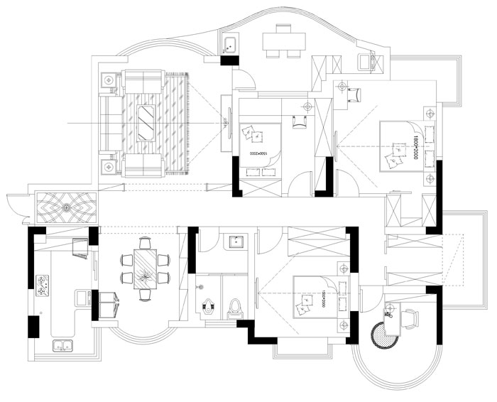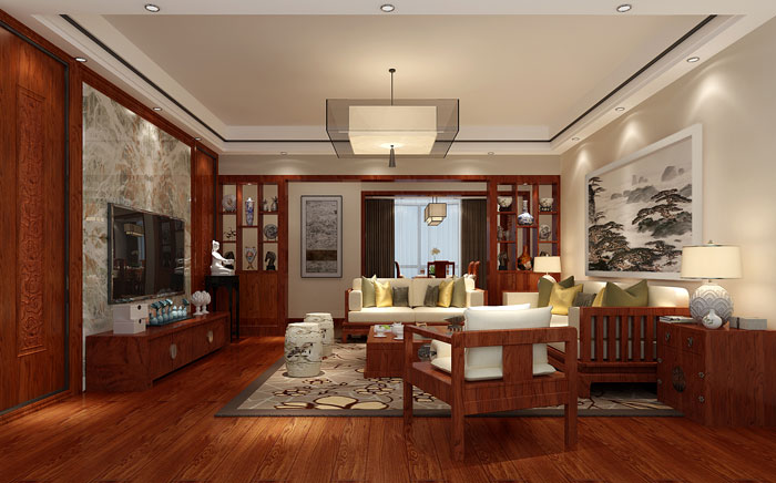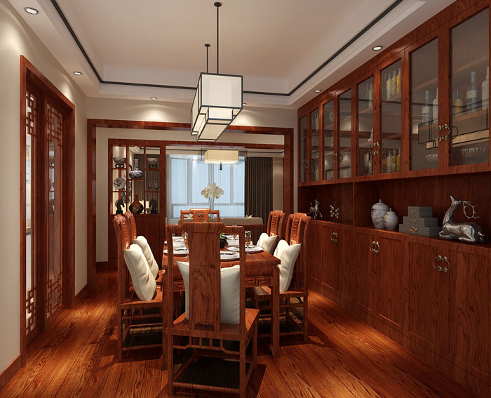 小区:天佑国际公寓 面积:141㎡ 户型:三居 风格:新中式风格