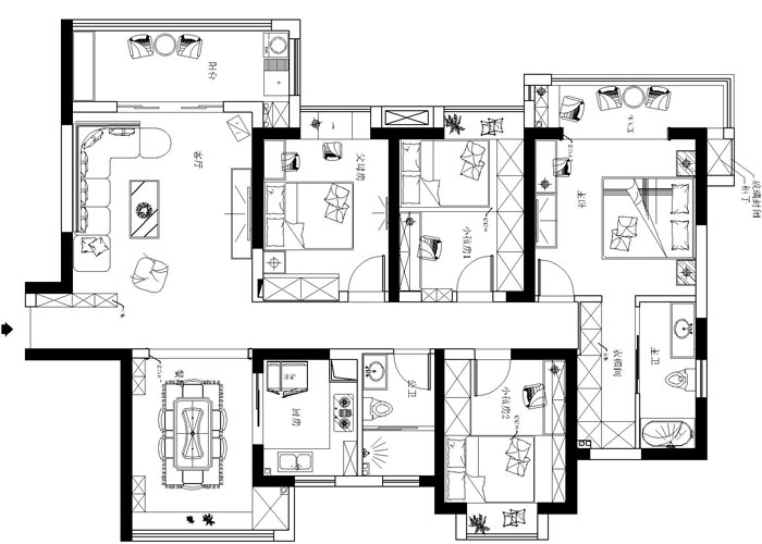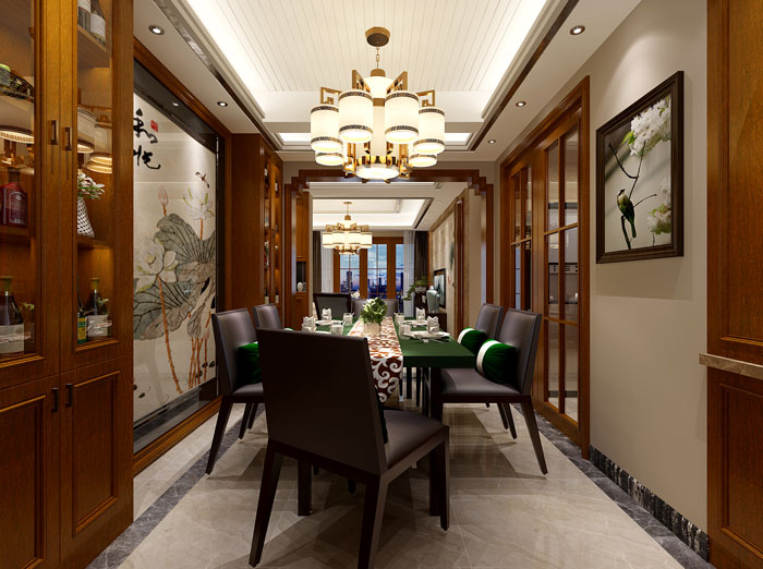 小区:绿地外滩公馆 面积:144㎡ 户型:三居 风格:新中式风格