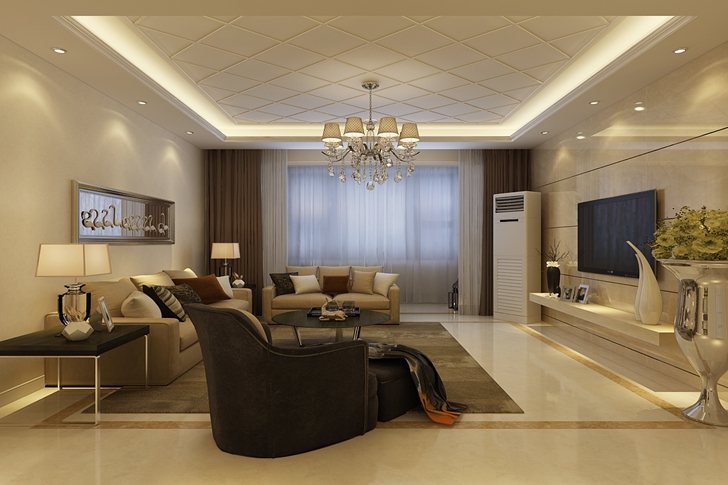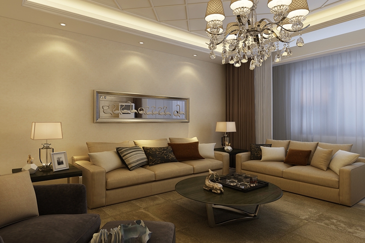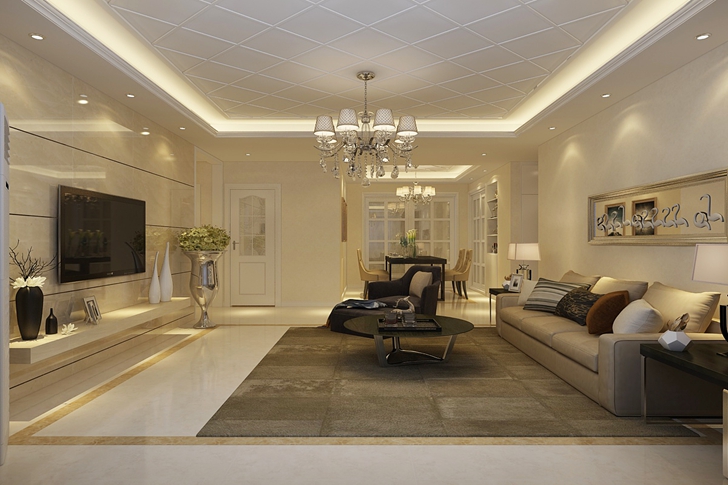 “浪漫满屋”主题婚房,本案定位为年轻一族打造的婚房,采取简约的设计思路,摒弃了传统的繁琐造型,从空间处理及造型手法均采用简洁的直线设计,客厅顶面的造型是打破简约氛围的一道风景线,色调以米色系为主,营造出浪漫温馨的整体感觉。