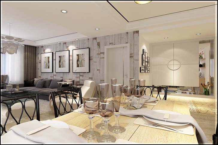 小区:金泰假日花城 面积:130㎡ 户型:三居 风格:现代简约风格