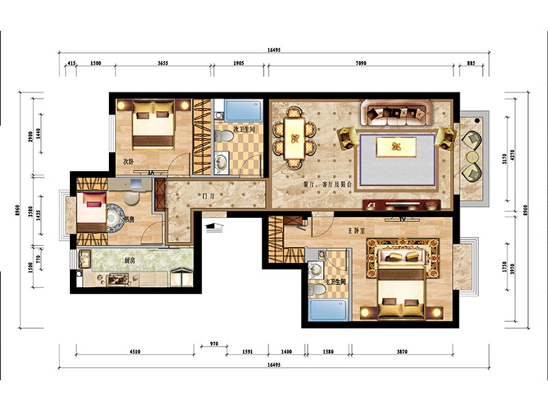 缺点:入户走廊狭长,没有独立门厅,没有鞋帽柜位置,实际生活不方便。