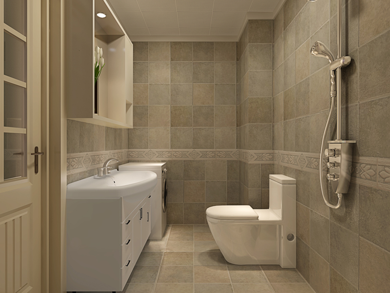 顶面统一使用集成吊顶,墙地面采用渐变色的相柔和的抛釉砖普铺,墙面中间铺贴了一圈的腰线点缀整个卫生间,浴室柜与洗衣机整体使卫生间丰富起来,空间合理的自动规划。