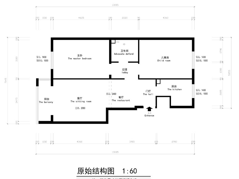 缺点:餐厅正对墙体空间无法利用,还造成采光问题