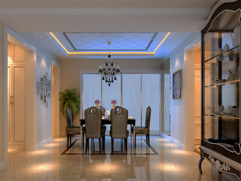 家具符合整体设计的风格。饰品,水晶灯,镜面的搭配在整个空间中强化着奢华时尚韵味。欧式的皮餐椅,奢华的展示柜,除此之外,植物的点缀也是每个空间必不可少的,为家中增加一抹生机的味道。