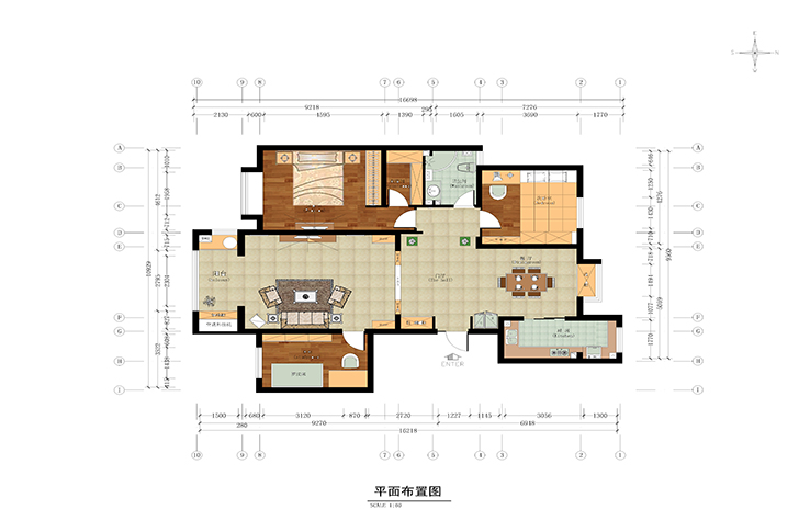 在结构上,门厅处,把原有局部轻体墙拆除,两侧增加墙体,中间形成一个装饰垭口,两侧运用中式护墙板做装饰,玄关的感觉体现的淋漓尽致;进门两侧新建隔断墙,左侧做内置鞋帽柜,解决了生活起居的问题,也合理的运用了空间,右侧隔断内侧嵌入式冰箱,无形之中就增大了餐厅空间,增加了就餐的舒适性,并且经过借力手法,设计师更加巧妙地把餐厅上的过梁通过修饰的手法变成了餐厅顶面的一道风景线;在家给爱人做一道亲手制作的美味佳肴,是女主人最乐意的一件事,也是男主人的幸福时刻,设计师把厨房与阳台连接的墙打掉,让两个空间融合在一起,使得厨房空间变得更加宽敞,明亮,也增加了采光和通风;书房门对客厅空间影响比较大,设计师为了让整个客厅空间更加大气,运用隐形门手法结合沙发背景墙造型的呼应,巧妙的规避了不合理的问题,不但加宽了沙发背景墙的空间,让视觉效果变得更加统一性;针对女主人的特殊需求上,通过沟通和交流,决定牺牲主卫生间,把此空间打造成女主人的衣帽间,L型的衣帽柜也解决了女主人衣物的收纳问题。为了让卫生间变得大一些,对原结构墙体的分析,两个卫生间之间的墙是用砌块砖砌的,可以打掉,设计师通过对墙体的改造,让卫生间不同的使用功能与空间变得更加舒适合理。针对本案的结构改造勘称完美,也得到业主极大的认可和支持。