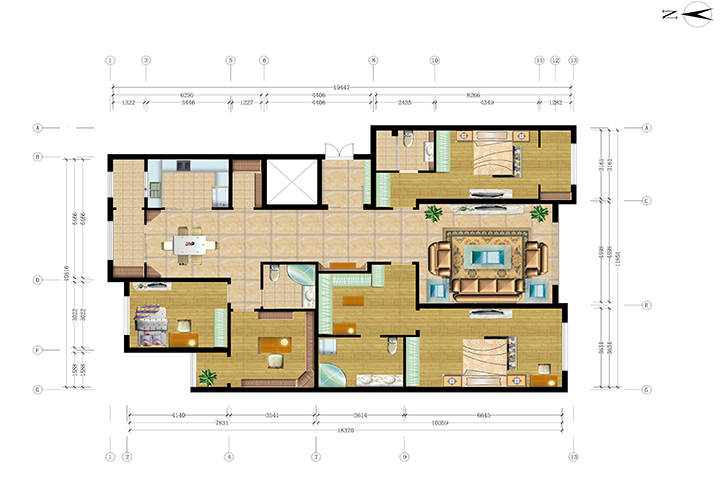 门厅通过完美的造型垭口贯穿,让门厅更加有整体性,玄关的凹口处理也让玄关柜有一个合理摆放位置,既不影响门厅的经过空间,也让玄关的视觉效果得到强化,主门进来的一个局部拼花,提升和增加了主人的生活品味。