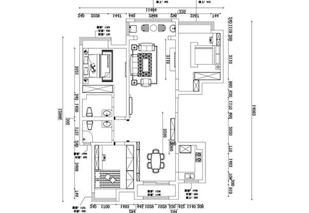 166㎡三居新中式风格润兰之城