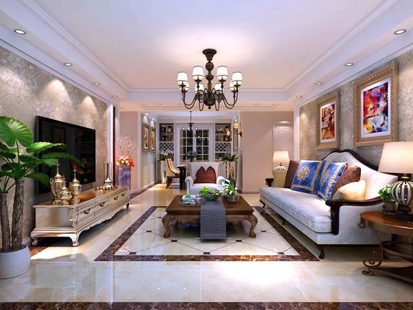设计说明:欧洲文化拥有着丰富的艺术底蕴和文化素养,开放、创新的设计理念及其华丽尊贵的姿容一直以来颇受众人喜爱与追求。无论是家具还是配饰均以其优雅、唯美的姿态,平和而富有内涵的气韵,描绘出居室主人高雅、尊贵的身份。整个设计方案的主色调为暖色,黄色糅合少量白色,使色彩看起来明亮、大方。大量的拱形造型的使用使欧式风格的特点得到明显的体客厅