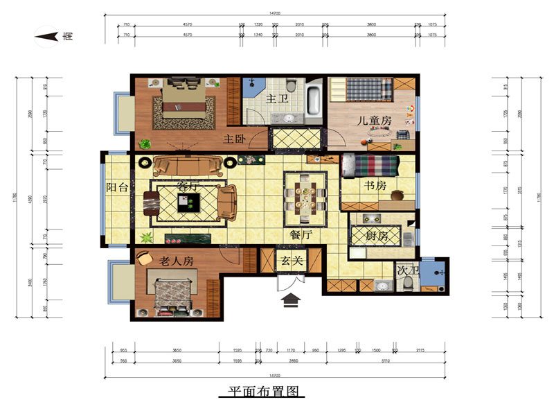缺点:卫生间分隔空间有先琐碎,没有书房的预留空间。