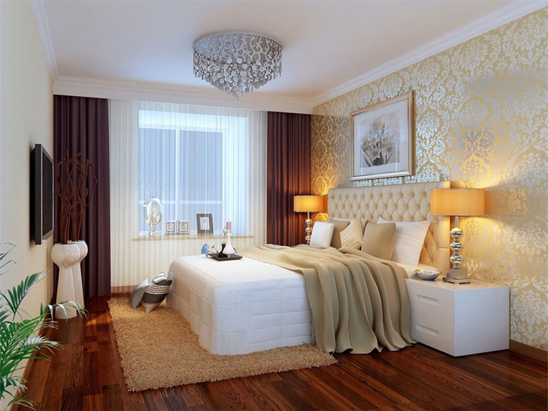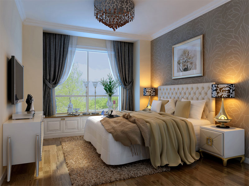 主卧的设计亮点就在窗户下面做一个飘窗设计,即能储物,也可以小憩片刻。背景墙灰色的壁纸和白色的皮纹床的搭配使整个空间简洁、时尚。次卧室的是备用的客房,有可能父母住,也可能是儿童房,所以未做过多的装饰,只是在色彩上做了一些搭配。
