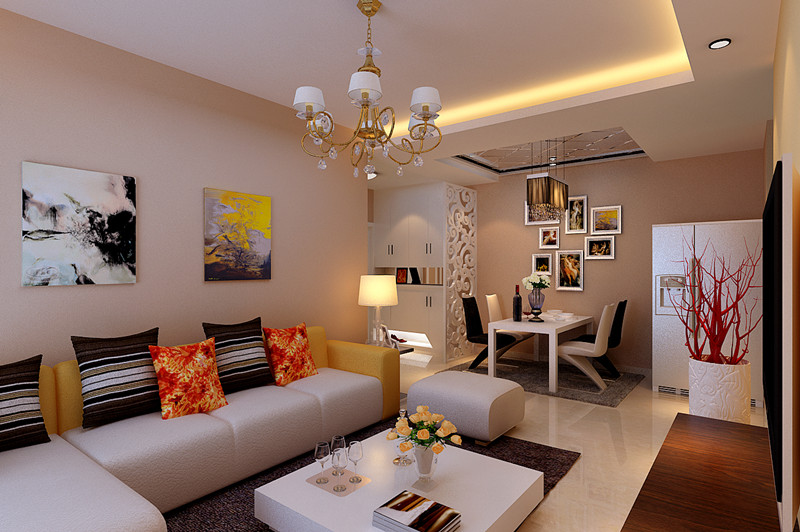 本案例位于丰台区融景城小区,第一次和业主见面,觉得很亲切,他们的要求比较简单,环保舒适温馨注重功能储物即可,未来两年会有孩子,所以整体颜色搭配不需要太花哨,所以,在整体空间里为配合空间干净利落的线条,简约素雅的家具和现代的感装饰让空间流露出时尚韵味。因为刚结婚不久的年轻夫妇,要求房子一定要环保健康素颜,所以客厅大面积的墙面采用的是进口的环保漆做温馨处理,素雅的色彩搭配烘托出房主的个性和气质。空间中合理的利用每个空间,以异样优美的吊顶来划分出来,温馨的墙面,晶莹透亮的简洁地砖,配上具有现代特点的家具,在淡黄色灯光的照耀下,使该空间得到进一步的升华。