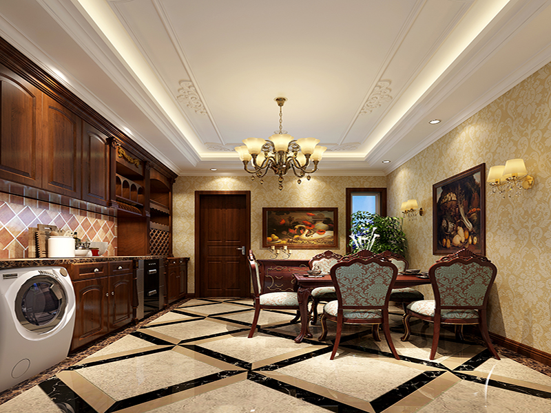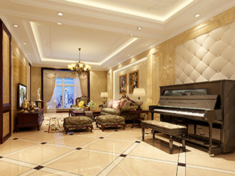 在一进门踏进门厅给客户直接的欧式感受,地面瓷质砖的整砖切割,地面拼花和顶面吊顶的完美呼应体现了设计的严谨和医生特有的一丝不苟相融合简单不失优雅。客厅以及过道都是用米黄色的地砖进行斜铺,区分区域以外用少许的黑色地砖点缀增加层次显着不是那么单调。墙面不同材质的运用体现出欧式风格的豪华和庄重。