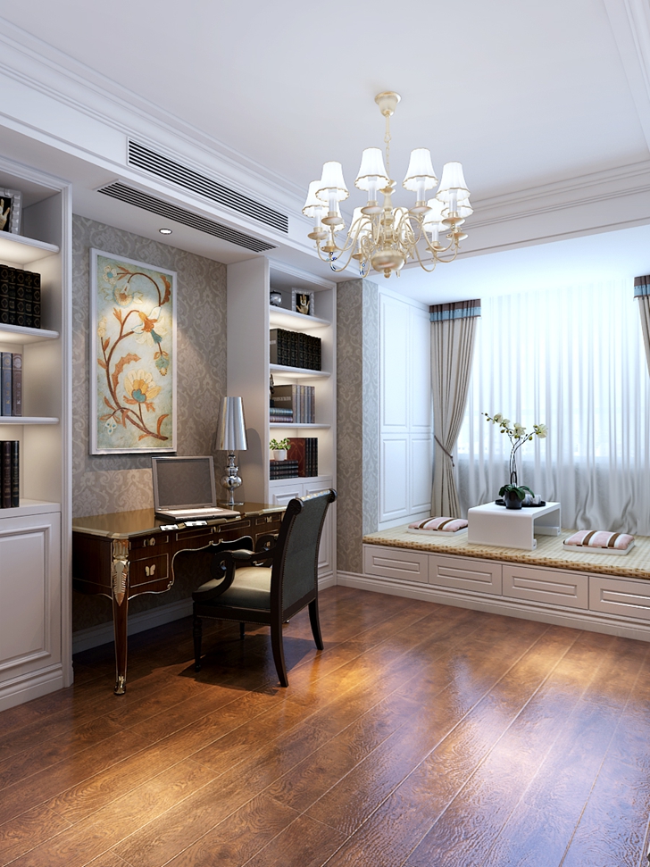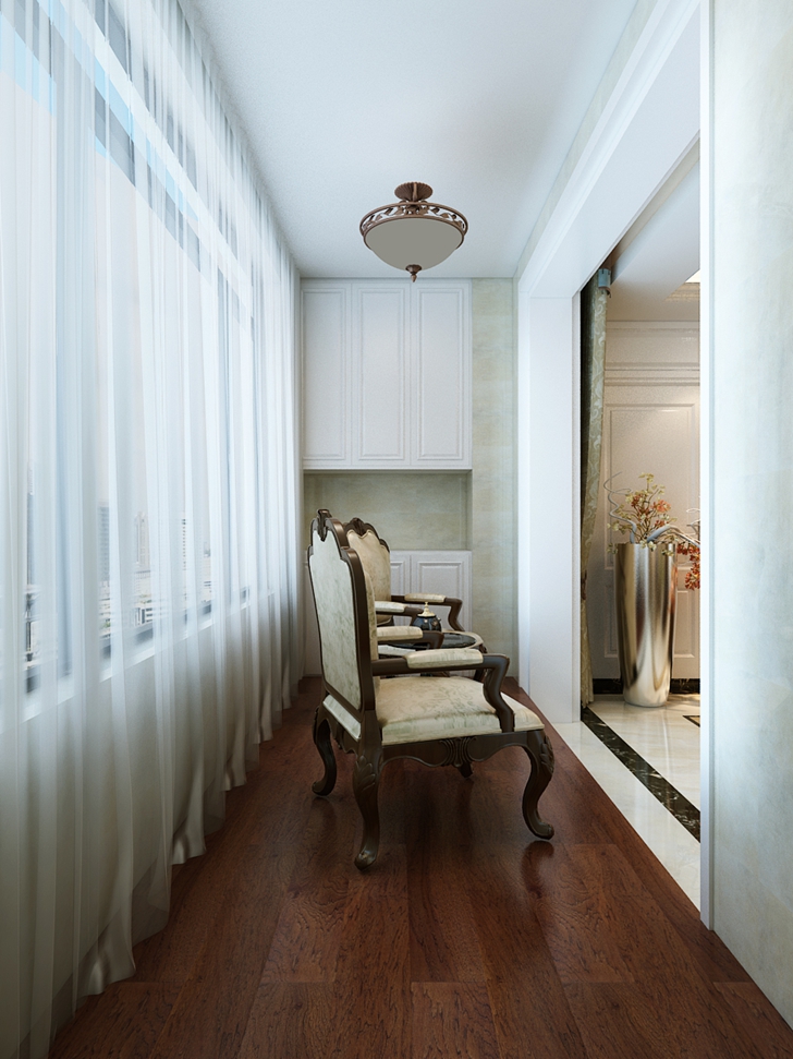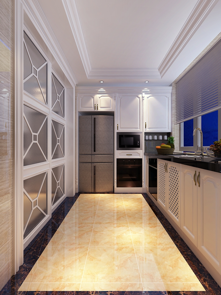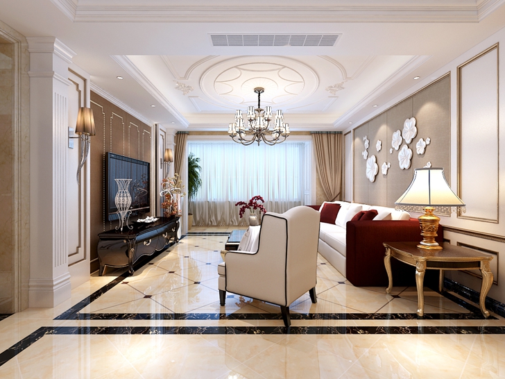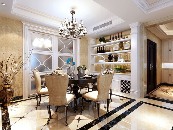 此设计方案的业主是一对中年夫妇,风格倾向定位为欧式风格,本案的设计重点是会客空间、以及进户端景的设计,以及卧室、女儿房的功能使用,从设计手法上采用了从墙面上的线与面的衔接呼应,以及顶面的空间的虚拟划分,达到各功能空间融会贯通的目的。