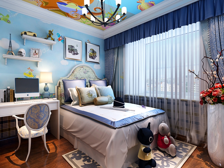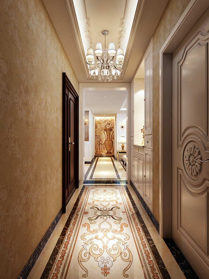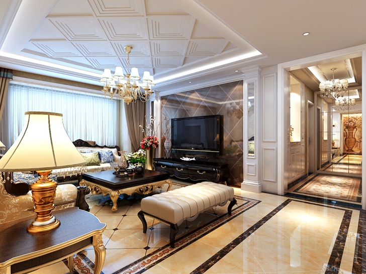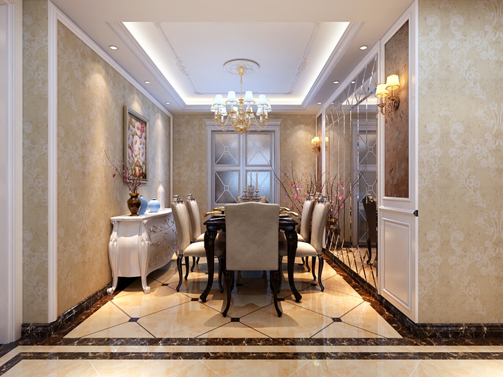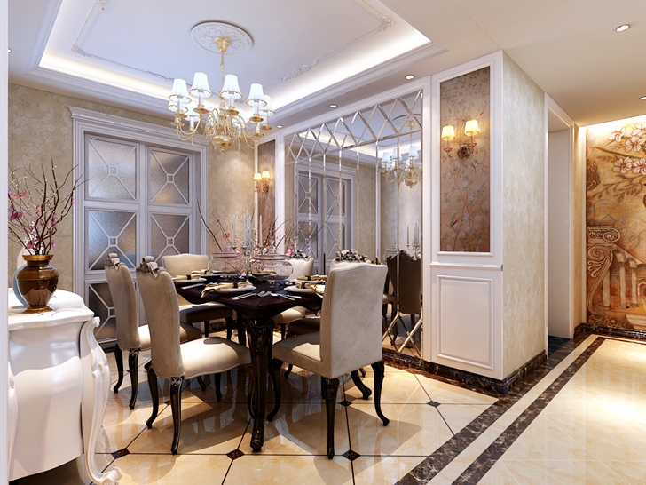 此设计方案的业主是一对年轻夫妇,风格倾向定位为欧式风格,本案的设计重点是会客空间、以及进户端景的设计,以及卧室、儿童房的功能使用,从设计手法上采用了从墙面上的线与面的衔接呼应,以及顶面的空间的虚拟划分,达到各功能空间融会贯通的目的。
