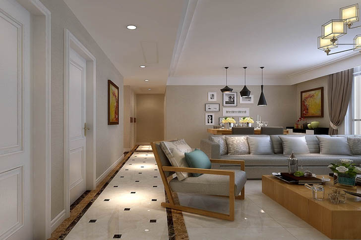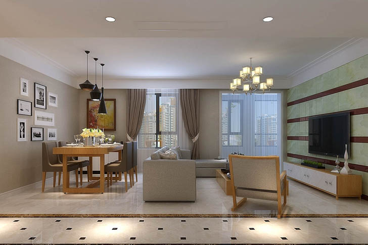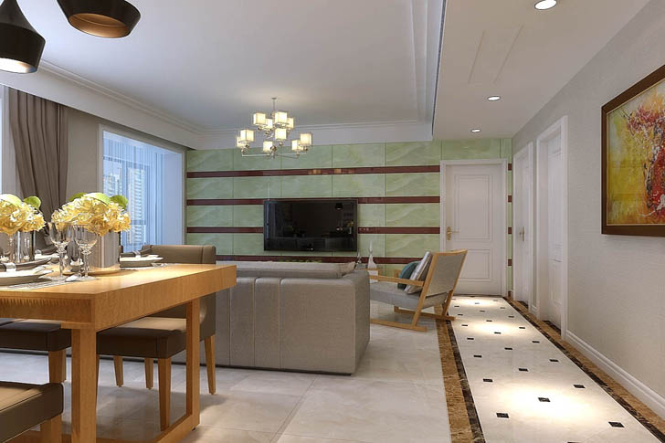 现代简约风格主要表现在空间开敞、内外通透,在空间平面设计中追求不受承重墙的限制自由。所以在设计现代简约的时候,很多时候都会考虑到墙面、地面、顶棚等的协调性