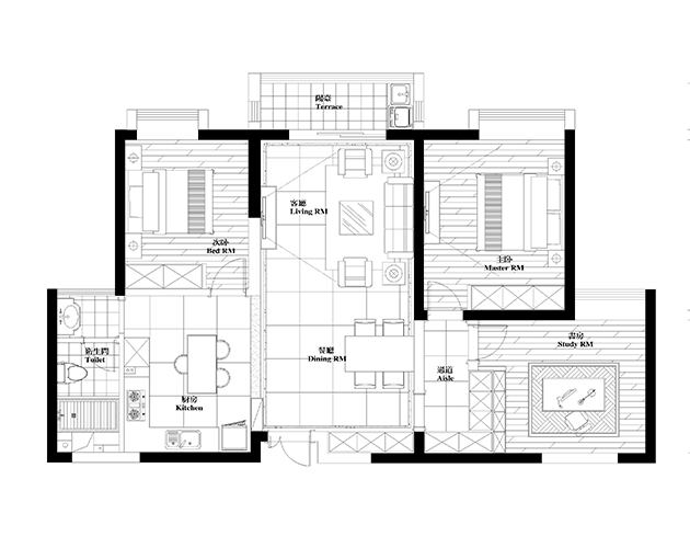 此套户型有较好的“骨骼”,因客户的工作性质,想打破传统结构,能体现出空间美和结构美。通过全面考虑,设计师在总体布局方面尽量满足业主生活上的需求,用现代手法和工艺还原自然气质。让业主在享受高品质氛围的同时,独享那份自在与优雅。从布局上,首先改变厨房和卫生间位置,弥补之前的进户空间不足缺点,满足了女主人的烹调需求,达到厨房与餐厅之间的相呼应,同时突出门厅区域空间感,从而达到空间主次动线分明。