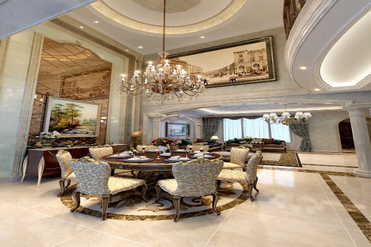 在门的造型设计上来说,包括房间门和各种柜门,既要有优美的弧线线条,也要突出造型的凹凸感,带点古罗马韵味,使整个空间更具有强烈的西方传统气息。