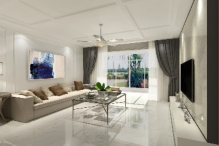 本案给人简洁、现代的舒适感,客厅与餐厅相连,将整个空间无限放大,整个空间体现的不单单只是简洁,更是一种生活品味、一种健康时尚。墙体以石膏线为主、与明亮的灯光融为一体化,在视觉上给人舒适的体验。大方设计作为家具配饰,充分彰显现代简欧风格。