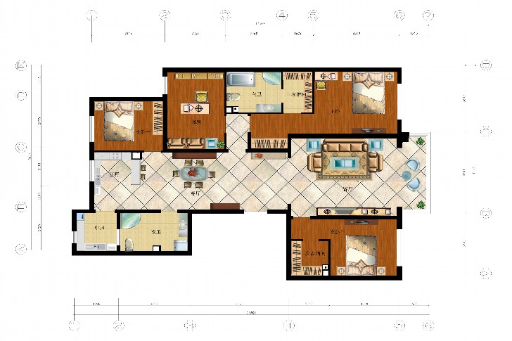 本案客户是一对追求浪漫时尚的年轻客户,喜欢欧式的奢华感觉,但受户型所限,格局又不能太过于死板,整体色调要求稳重大方、华丽而又不过于张扬。