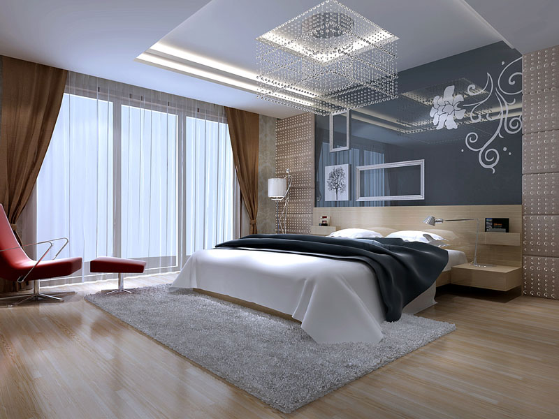 卧室床品选的颜色纯度比较高,更好的迎合了女主人的喜好,方形水晶灯配以吊顶浑然一体,为使空内不过于平庸,立面装饰采用了玻璃烤漆与硬包相结合的形式,和现代感较强的家具配饰自然的整合在了一起。以米黄为主色调进行设计,使整个空间显得特别明亮,同时休闲椅大胆的运用了颜色对比,使整个空间在活泼中又透露出那么一点点沉稳而大气的感觉,在视觉冲击力上,给人充满活力充满生机焕然一新的感觉。