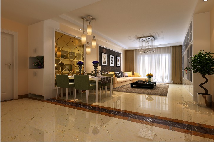 客厅简约时尚具备现代风格的特点,艺术玻璃的使用,提升了现代设计风格的特点,暖色墙漆,深色沙发背景墙增加了视觉的冲击性,电视背景墙采用整面墙体定制展示书柜的形式,更是增添了几分客厅的书香气息。