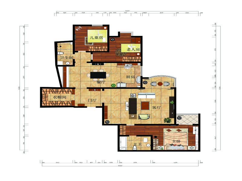 缺点: 主卧无单独衣帽间,走廊空间过大。