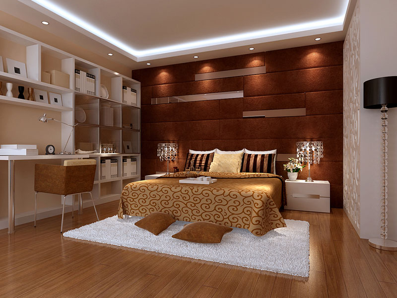 主卧是主人休息的区域,整体色调非常温馨,背景墙使用软装进行装饰,在灯光的照射下显得格外雅致,使空间显得不生硬,宽大的双人床柔软舒适,更能体现出卧室温馨的感觉,墙面采用大马士革壁纸,使得空间不失时尚感,地板与整体色调的结合使主人在此区域中更能放松身心。