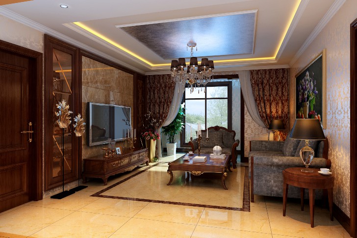 【客厅】:以客厅为例,因为考虑到了业主的生活习惯及个人喜好,所以在用色上并没有选择太过于跳跃、或艳丽的色调,而是选用了胡桃色的色调,与白色一起搭配,整体以稳重为主,再加上黄色的地砖等的点缀,既不会显得单调也不会让人感觉沉闷;色调的相互搭配是本案的一大亮点,白色的顶面在黄色柔和灯光的照耀下,给人一种自然温馨的感觉。