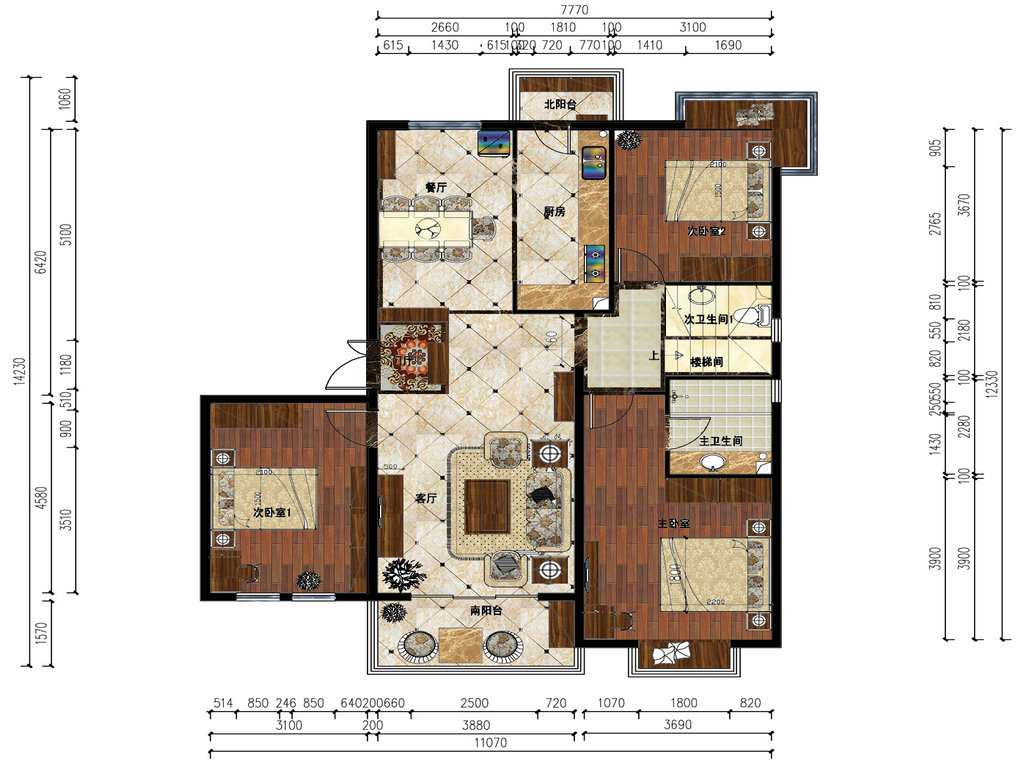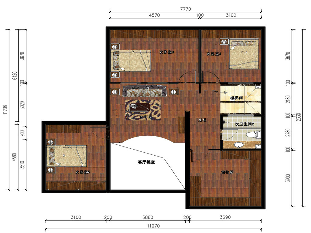 欧式线条加上舒适宽敞的家具,将浅色和重色调的结合,凸显房间的别致!