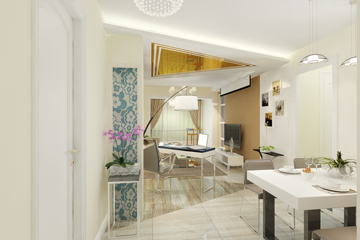 设计说明:简约风格设计,简单而实用。大面积地板的使用也能适应不同人群的各种需要。大胆的配色,简约的装饰画框,无一不显得张扬与品味。
