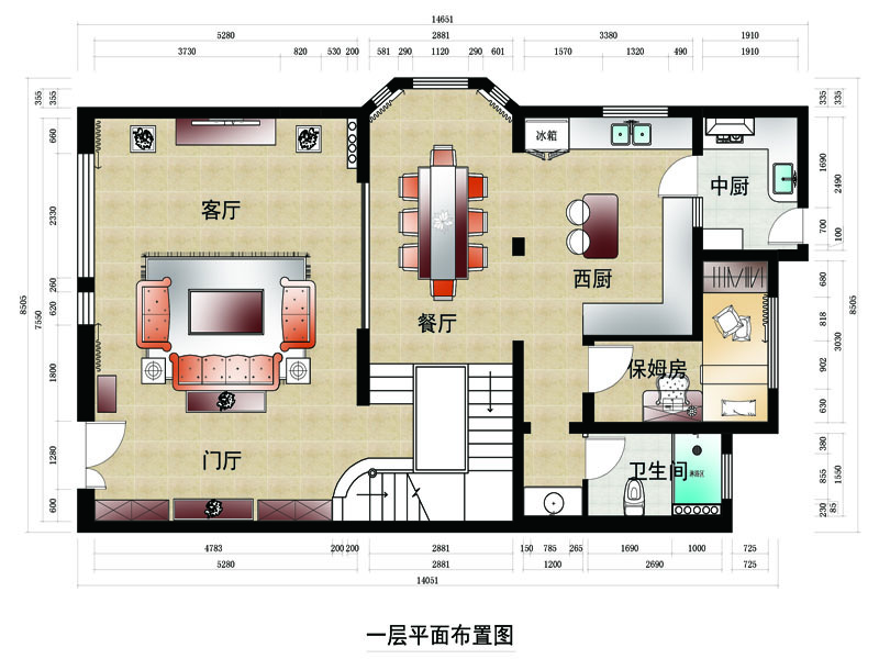 本案业主夫妻二人又特别欣赏海棠花的温和,美丽,快乐的精神,所以我们定义的主题为“梦回海棠”为了使整个空间以海棠花为主题,在进门的门厅处做了一幅以海棠花为背景的大幅装饰画,装饰画的两侧以储物柜为主,设计灵魂在于不只是美观还要讲究实用性。让业主回到家中就能感受到温馨的气氛。客厅电视背景是以新古典风格的元素给予呼应的,用石材与硬包的结合,不仅能表现材质与材质之间的对比,还能彰显客厅的贵气。