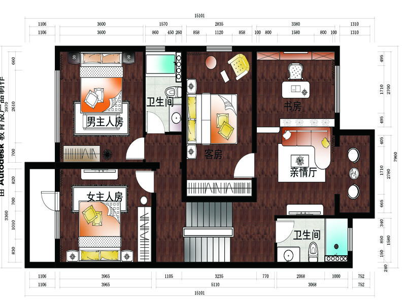 本案整体设计围绕的中心都是希望住在这个房子里的人都能有一个如同海棠花一样温和、美丽、清新、快乐的心情。