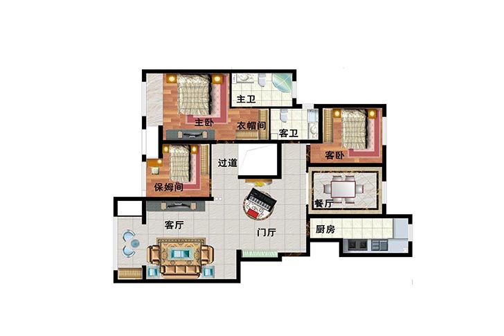 公共空间地面用的是800*800的大地砖,整体性更强,去掉繁杂的纹理,回归自然的本性,让家得以释放温暖气息。墙面线条木纹肌理,横纵向排布,简约却不失欧式感,打破复杂繁冗!