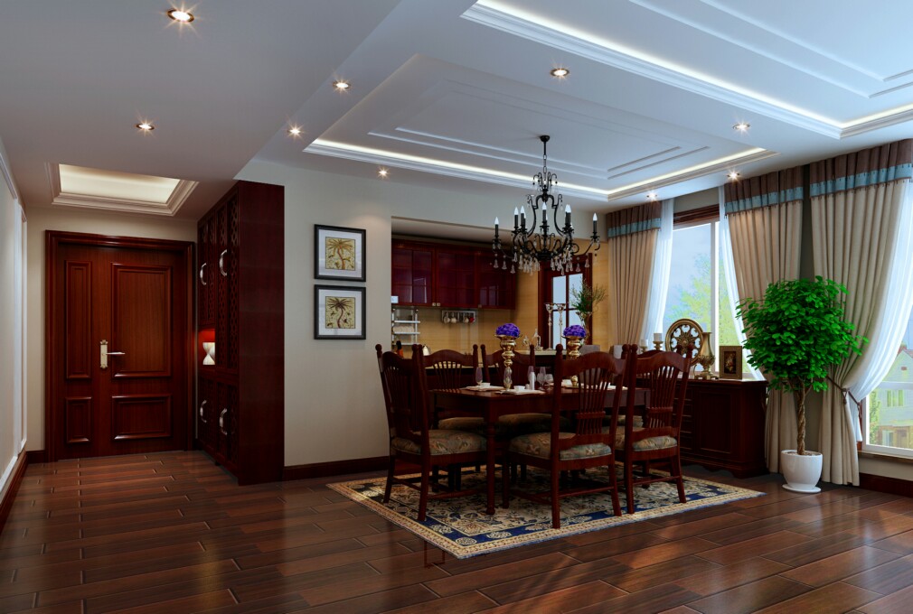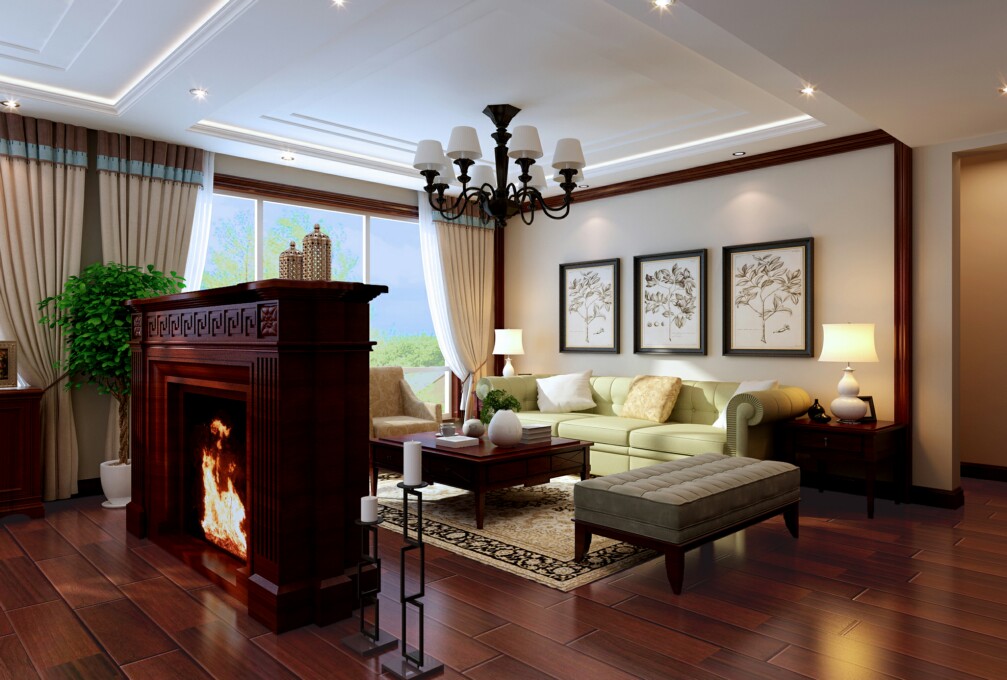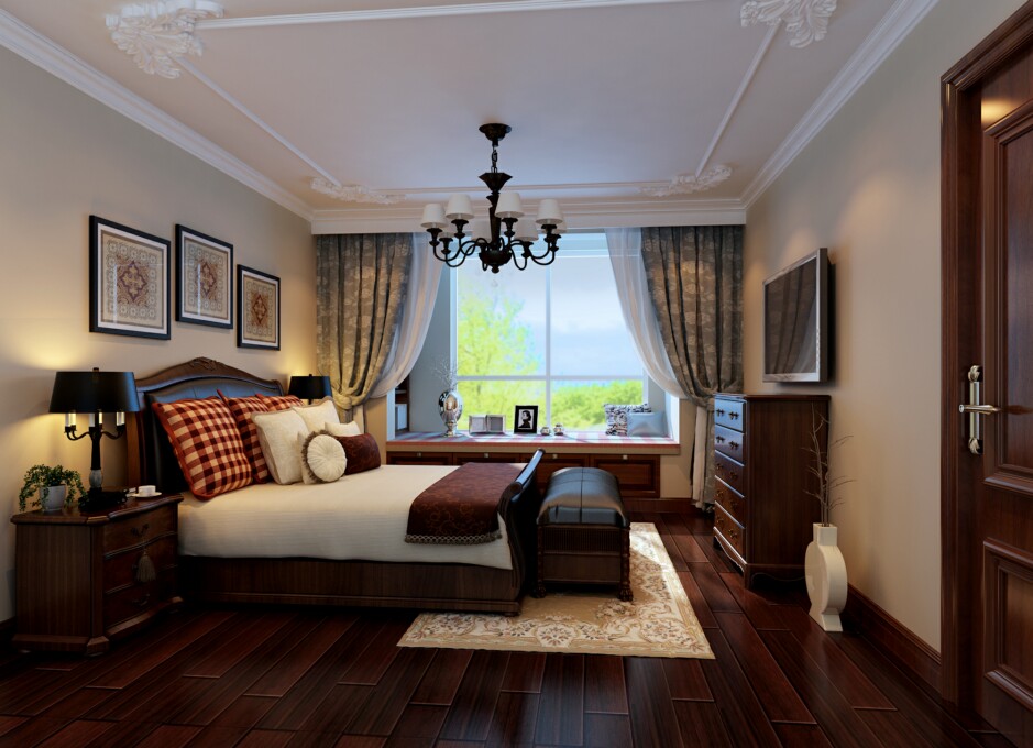 小区:润泽公馆 面积:145㎡ 户型:三居 风格:美式风格