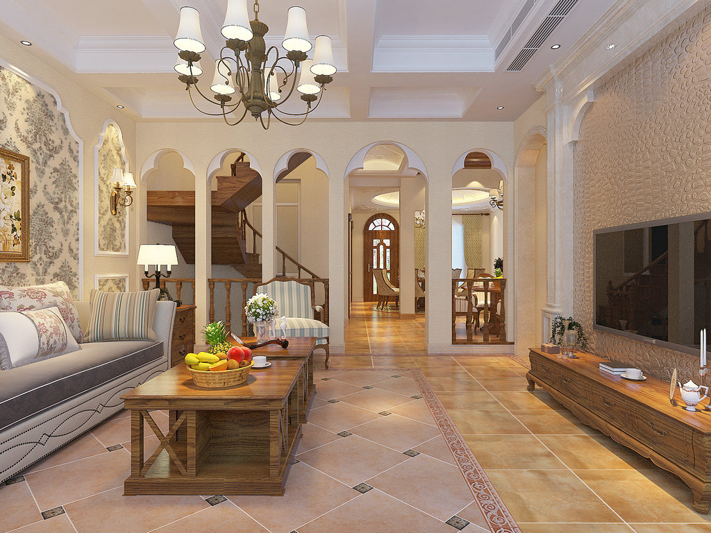 这套方案是业主在济南买的一套别墅,用作平时两地工作时用度,两人有一个1周岁大的宝宝,以后妻子和孩子要在济南生活,所以业主两个人因家庭和工作原因,时间都都不是很多,所以尽量吧房屋设计的要轻松和有温馨感,两人喜欢住的房子空间上和利用率上大一点,(也是这次方案主题风格定位特殊性的原因 简欧)在整体设计上,采用了以暖白色为主配上淡黄色的基本色,深色系做为辅助色调的手法,使整个空间在原有的格局上显得不那么单一又不会又太大的跳跃性,也能彰显年轻人热爱自由和温馨的一面。吊顶的造型除了营造欧式的风格以外,更增加了房间的一个整体空间感,使房间显的更高局部的圆弧处理也使的整个空间更具有圆润性。