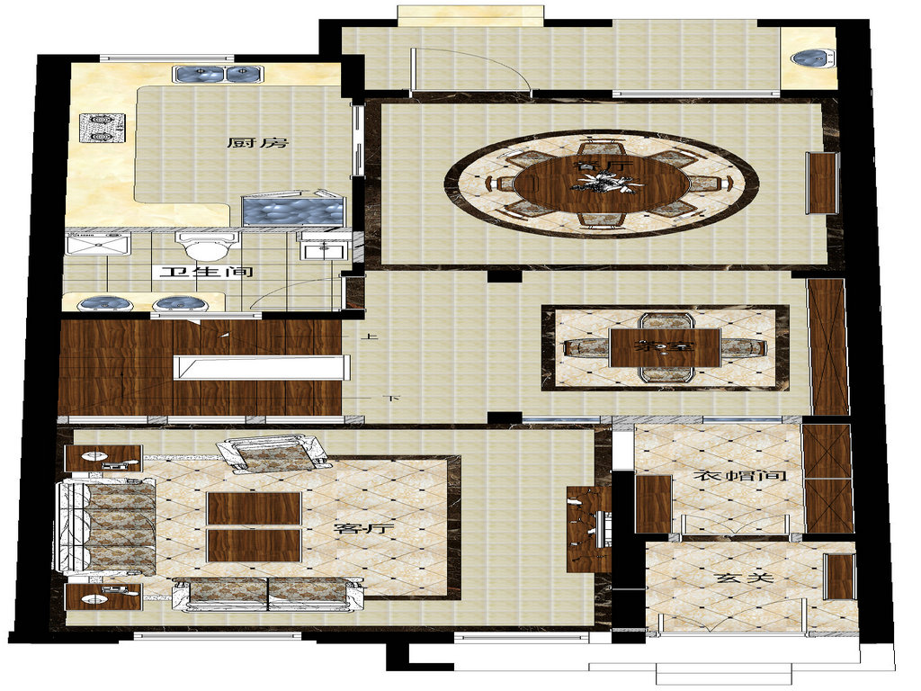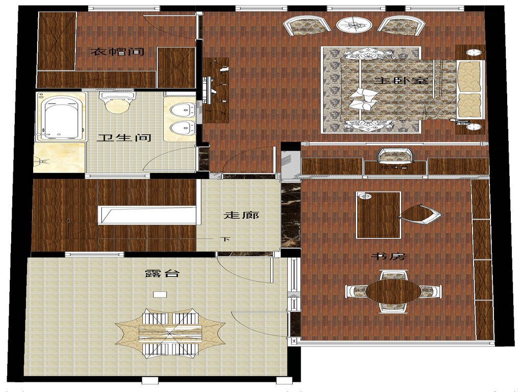 欧式线条加上舒适宽敞的家具,将浅色和重色调的结合,凸显房间的别致!