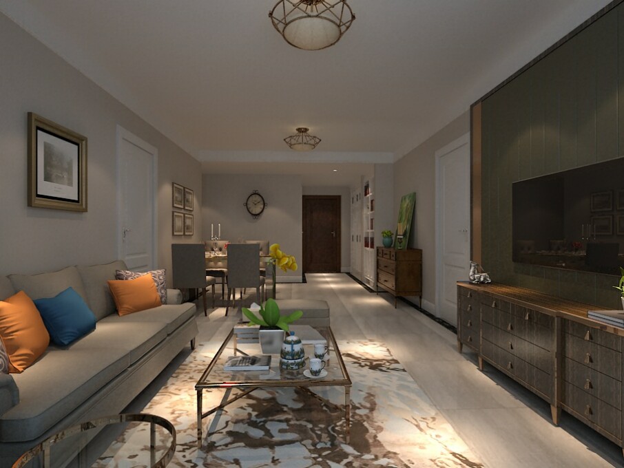 本案为100平方米左右的户型,是为一对青年夫妇,主人崇尚自由、温馨舒适。本方案设计主在风格的把握上选择了美式休闲风格。在空间上做了相应的调整,在划分区域的同时,并增加了相应的功能。电视墙运用了的大理石作为装饰,美观的同时更大化的增加了实用空间。使空间里多了一些流动性,不单调。通过墙漆的颜色,和材质、家具、配饰上的搭配,符合客户需求的同时,也给人一种慵懒但不缺乏精致,紧跟潮流却又舒适的家居环境。时尚而不缺乏美感,用最简单的方式表达出最美的效果,又不缺乏实用性。