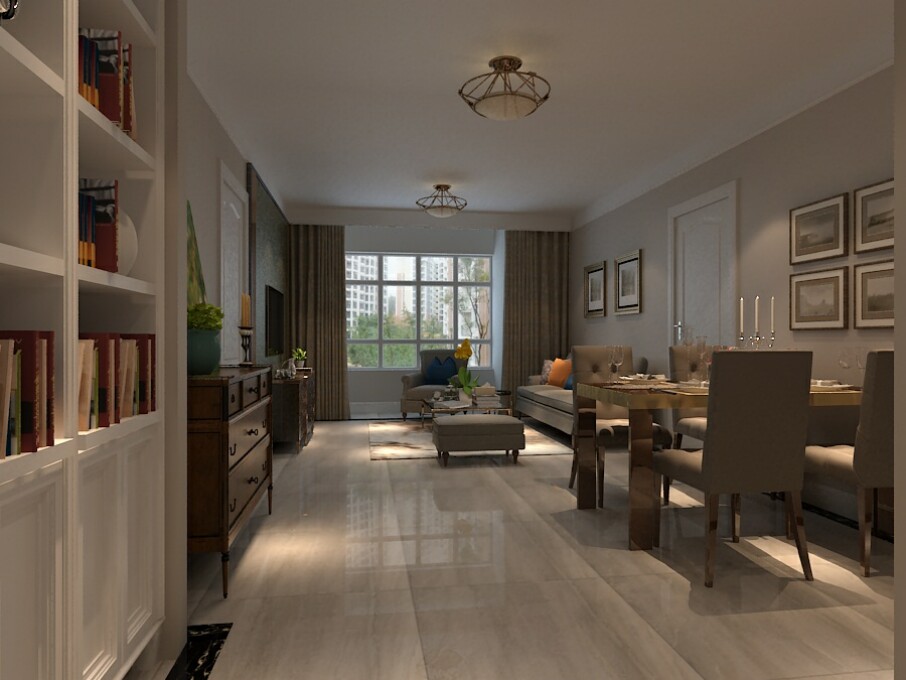 小区:润泽公馆 面积:100㎡ 户型:三居 风格:美式风格