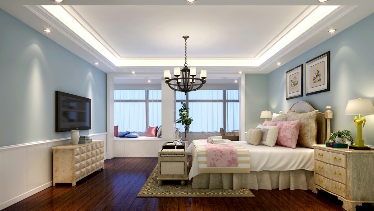 无论身处何地,都少不了休息,少不了夫妻间休戚与共的打造自己的家庭。这就是主卧了,人生三分之一的时间将在这里度过。那就必不能少了飘窗设计,以供主人稍作休息,读书看报,拉开窗帘就能看到美丽的山景,如此惬意的生活怎么不令人向往。主卧室吊顶依然是多层跌级吊顶,简约时尚的床品和简单有致的摆饰,尽显空间的舒适,为佳期如梦的甜蜜提供了安乐之乡。