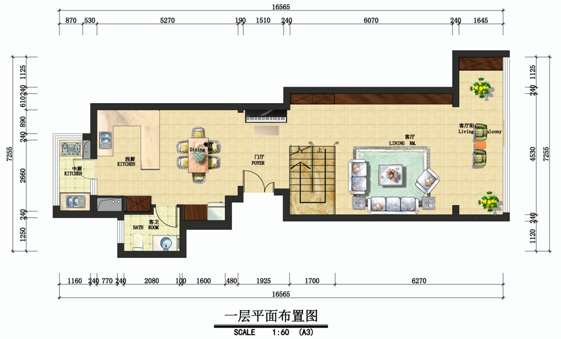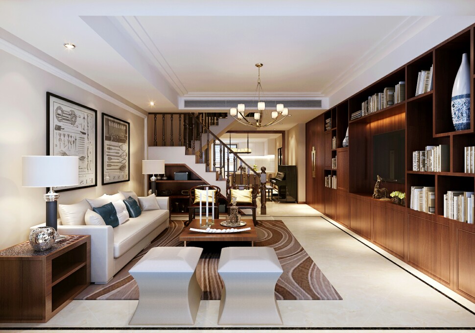 此户型业主是一位企业老总。房子位于北京西北部,离市区较远,只在周末居住,以便享受美好的风景和清新的空气。业主平常生活在纷杂繁华的环境,希望周末的家能让自己感觉到放松、舒适、简洁、大方。客厅里相近自然的原木色书柜装满了供主人闲暇时光里翻阅的书籍。两把圈椅表现了主人骨子里满怀的古老传统,又在革故鼎新的生活中提高自己的品质。房间本身不高,我们采用了很薄的多级吊顶,以层次拉开距离,以白色漆凸显高度。沙发后的装饰画并非什么名人所做,但画中的线条和文字排列充满了张力,在宁静的环境中跳起一支静谧的《序列之舞》。