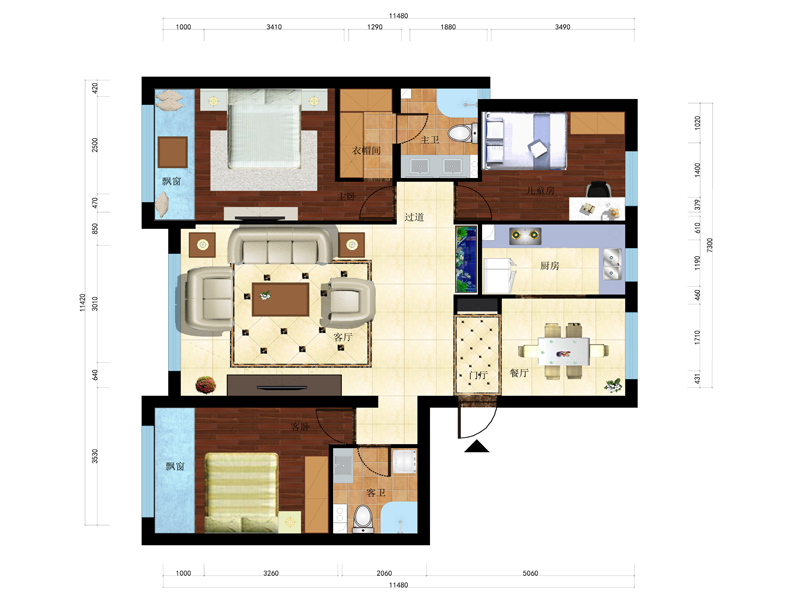 小区:万达广场 面积:100㎡ 户型:三居 风格:现代简约风格