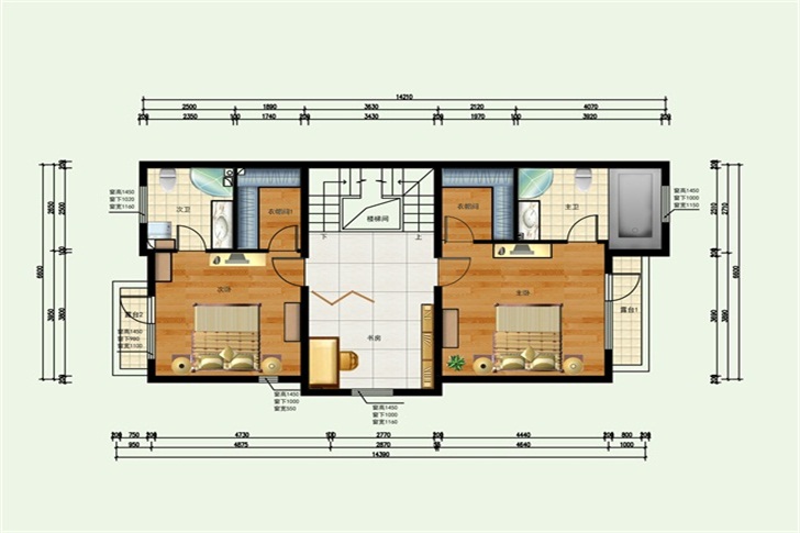 二层布局:二层原有结构分为两个卧室、书房、衣帽间及卫生间。充分考虑客户需求,将其改造为主卧室及开放式书房。在家具配置上,选用了奢华系列产品,主体材质为实木,产品设计厚重凝练、线条流畅、高雅尊贵。在细节处雕花彩绘、一丝不苟。在配饰上衬托出古典家具的高贵与优雅,赋予古典美感的窗帘盒地毯、造型古朴的吊灯使整个空间看起来赋予韵律感且大方典雅,柔和的浅色花艺为整个空间带来了柔美的气质,给人以开放、宽容的非凡气度,使人丝毫不显局促。通过完美的曲线,精益求精的细节处理,带给家人不尽的舒服触感。
