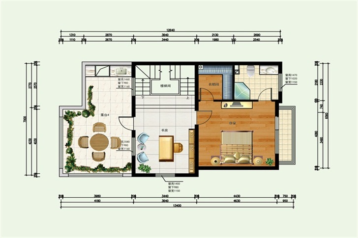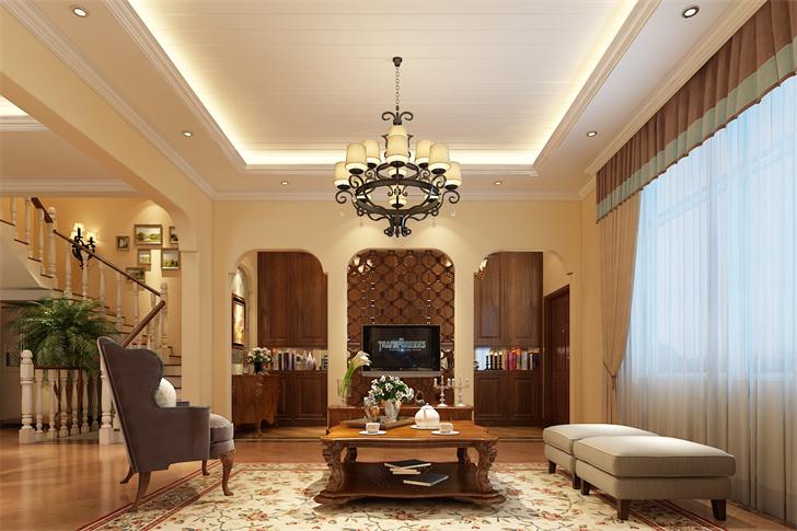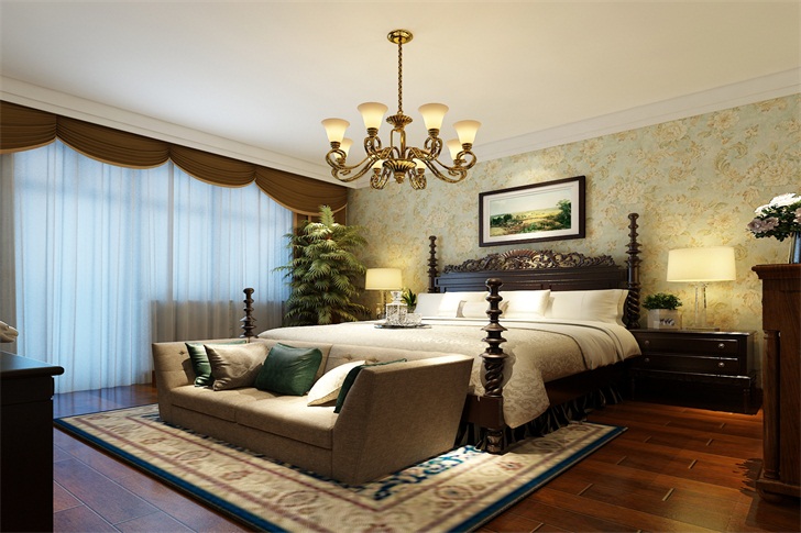 露台:露台作为室内空间的外延,让家最大程度地迎接阳光和空气。真正做到了:坐在家中,就可拥有天与地。所以我们设计没有封上,保留原有的空间,种些花花草草,放几把休闲椅,为业主生活增添无穷乐趣。 以上是根据客户要求结合设计理念做的方案,时代在发展,高科技新技术的应用也不乏是客户的选择,家里的所有灯光、门窗都可以通过遥控器或中控主机统一控制、远程控制,有没有觉得很有派,但是在这家中不可忽视还有环保,国际相关组织调查显示,大多数建筑物的室内空气污染程度是室外的10倍以上;空气净化系统让您感觉不到室内空气的冷热、干湿和流动,也没有任何微小的刺激,空气非常干净,即达到无刺激、无差别的舒适状态。 美式装修风格的色彩及造型比较含蓄保守,所以我以舒适机能为导向,兼具古典的造型与现代的线条、人体工学与装饰艺术的家具风格,充分体现出自然质朴的特性。