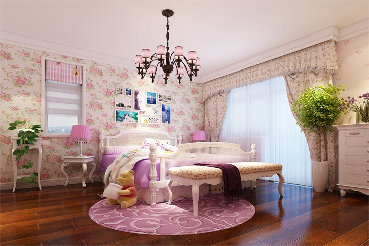 三层布局:三层原始结构分为一个卧室、衣帽间及卫生间,一个敞开式房间和露台。经过与客户的多次沟通并了解了客户的大概家庭结构,三层为女儿房和活动空间。作为公主房,整体色调选用了孩子喜欢的粉色,墙面上挂些成长照,再配上几株绿植来点缀下,让整个空间温馨又活跃。地毯上面的玩具可让人们回想起童年。优雅而精致的细节处理,带给家人不尽的舒服触感。